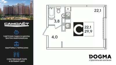 DOGMA - ТОП-3 застройщик по объему строительства в РФ. "САМОЛЁТ" — концептуальный жилой микрорайон, который расположен на северо-западе Краснодара, в районе Западного Обхода. Квартал спроектирован как "город в городе", поэтому здесь будет всё для комфортной жизни: современные дома с разными планировками, дороги, школы и детские сады, поликлиника, торговые центры, парки и аллеи. Микрорайон находится далеко от промышленных предприятий, сочетает удобство городской жизни и экологически благоприятную среду. Инфраструктура нового микрорайона: • 4 школы и 9 детских садов на территории микрорайона • Функциональные планировки • Собственный бульвар протяжённостью 1,6км • Светомузыкальный фонтан протяжённостью 55 метров • Амфитеатр • Парк 7 ГА • Скейт-парк • Детская аква-площадка • Круглосуточное видеонаблюдение и пост охраны Приобрести квартиру можно одним из способов: ипотека, рассрочка, наличный расчет.
