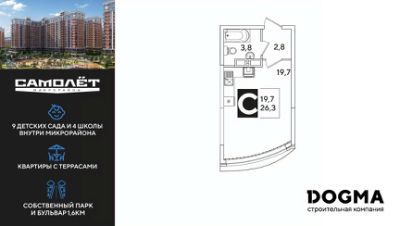 DOGMA - ТОП-3 застройщик по объему строительства в РФ. "САМОЛЁТ" — концептуальный жилой микрорайон, который расположен на северо-западе Краснодара, в районе Западного Обхода. Квартал спроектирован как "город в городе", поэтому здесь будет всё для комфортной жизни: современные дома с разными планировками, дороги, школы и детские сады, поликлиника, торговые центры, парки и аллеи. Микрорайон находится далеко от промышленных предприятий, сочетает удобство городской жизни и экологически благоприятную среду. Инфраструктура нового микрорайона: • 4 школы и 9 детских садов на территории микрорайона • Функциональные планировки • Собственный бульвар протяжённостью 1,6км • Светомузыкальный фонтан протяжённостью 55 метров • Амфитеатр • Парк 7 ГА • Скейт-парк • Детская аква-площадка • Круглосуточное видеонаблюдение и пост охраны Приобрести квартиру можно одним из способов: ипотека, рассрочка, наличный расчет.