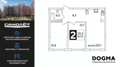 DOGMA - ТОП-3 застройщик по объему строительства в РФ. "САМОЛЁТ" — концептуальный жилой микрорайон, который расположен на северо-западе Краснодара, в районе Западного Обхода. Квартал спроектирован как "город в городе", поэтому здесь будет всё для комфортной жизни: современные дома с разными планировками, дороги, школы и детские сады, поликлиника, торговые центры, парки и аллеи. Микрорайон находится далеко от промышленных предприятий, сочетает удобство городской жизни и экологически благоприятную среду. Инфраструктура нового микрорайона: • 4 школы и 9 детских садов на территории микрорайона • Функциональные планировки • Собственный бульвар протяжённостью 1,6км • Светомузыкальный фонтан протяжённостью 55 метров • Амфитеатр • Парк 7 ГА • Скейт-парк • Детская аква-площадка • Круглосуточное видеонаблюдение и пост охраны Приобрести квартиру можно одним из способов: ипотека, рассрочка, наличный расчет.