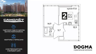 DOGMA - ТОП-3 застройщик по объему строительства в РФ. "САМОЛЁТ" — концептуальный жилой микрорайон, который расположен на северо-западе Краснодара, в районе Западного Обхода. Квартал спроектирован как "город в городе", поэтому здесь будет всё для комфортной жизни: современные дома с разными планировками, дороги, школы и детские сады, поликлиника, торговые центры, парки и аллеи. Микрорайон находится далеко от промышленных предприятий, сочетает удобство городской жизни и экологически благоприятную среду. Инфраструктура нового микрорайона: • 4 школы и 9 детских садов на территории микрорайона • Функциональные планировки • Собственный бульвар протяжённостью 1,6км • Светомузыкальный фонтан протяжённостью 55 метров • Амфитеатр • Парк 7 ГА • Скейт-парк • Детская аква-площадка • Круглосуточное видеонаблюдение и пост охраны Приобрести квартиру можно одним из способов: ипотека, рассрочка, наличный расчет.