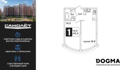DOGMA - ТОП-3 застройщик по объему строительства в РФ. "САМОЛЁТ" — концептуальный жилой микрорайон, который расположен на северо-западе Краснодара, в районе Западного Обхода. Квартал спроектирован как "город в городе", поэтому здесь будет всё для комфортной жизни: современные дома с разными планировками, дороги, школы и детские сады, поликлиника, торговые центры, парки и аллеи. Микрорайон находится далеко от промышленных предприятий, сочетает удобство городской жизни и экологически благоприятную среду. Инфраструктура нового микрорайона: • 4 школы и 9 детских садов на территории микрорайона • Функциональные планировки • Собственный бульвар протяжённостью 1,6км • Светомузыкальный фонтан протяжённостью 55 метров • Амфитеатр • Парк 7 ГА • Скейт-парк • Детская аква-площадка • Круглосуточное видеонаблюдение и пост охраны Приобрести квартиру можно одним из способов: ипотека, рассрочка, наличный расчет.