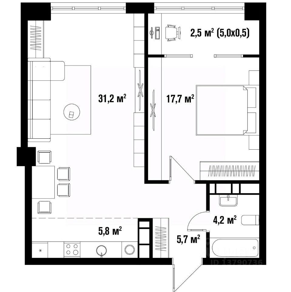 Широкая квартирография - от студий до 4 комнатных квартир евроформата. Высота потолков - 3,6 метра , возможность устройства 2го уровня в одной квартире.