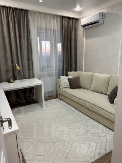 Квартира светлая с панорамными окнами в гостиной и спальне. Обзор на две стороны дома. Три изолированные комнаты, большая кухня-гостиная, балкон с прекрасным видом на природу. Много места для хранения одежды: 3 встроенных шкафа, два дивана с местом хранения, 2 двуспальные кровати с подъемным механизмом, а так же есть гардеробная комната. Теплые полы на балконе, в спальне, гостиной и коридоре(очень выручает в осенне-зимний период). Стиральная и сушильная машина вынесены в отдельную комнату. Вся техника bosh(производство Германия): посудомоечная машина, встроенный холодильник, морозильная камера, встроенная микроволновка, индукционная плита, духовой шкаф, стиральная машина, сушильная машина. 3 навесных, широкоформатных телевизора lg, Samsung. В каждой комнате кондиционер (4шт.). Видеодомофон, + отдельно установлена камера в подъезде. Есть проточный подогреватель воды на время отключения горячего водоснабжения. Установлены водяные фильтры: питьевой и проточный на входе.