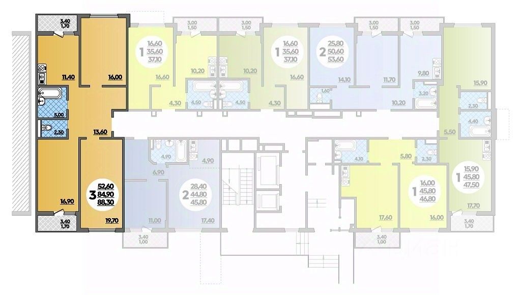 Продаётся 3-комнатная квартира в строящемся доме (Литер 7.1), срок сдачи: IV-кв. 2025, общей площадью 88.3 кв.м., на 14 этаже. ВЫГОДНОЕ РАСПОЛОЖЕНИЕ