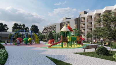 - Благоустроенная территория, обширный перечень коммерческих помещений, мест для парковки, детские и спортивные площадки, места для отдыха.