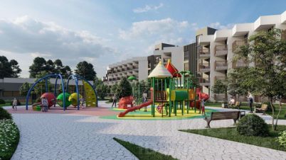 - Благоустроенная территория, обширный перечень коммерческих помещений, мест для парковки, детские и спортивные площадки, места для отдыха.