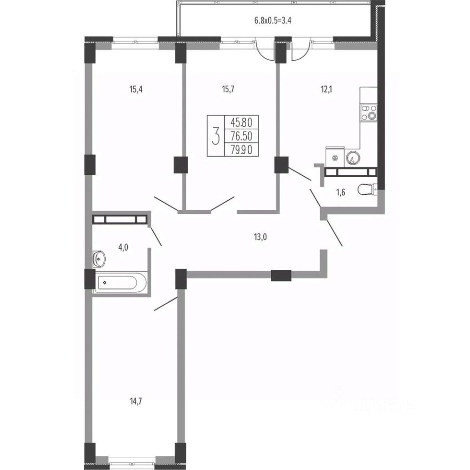 Жилая площадь45,8 м²