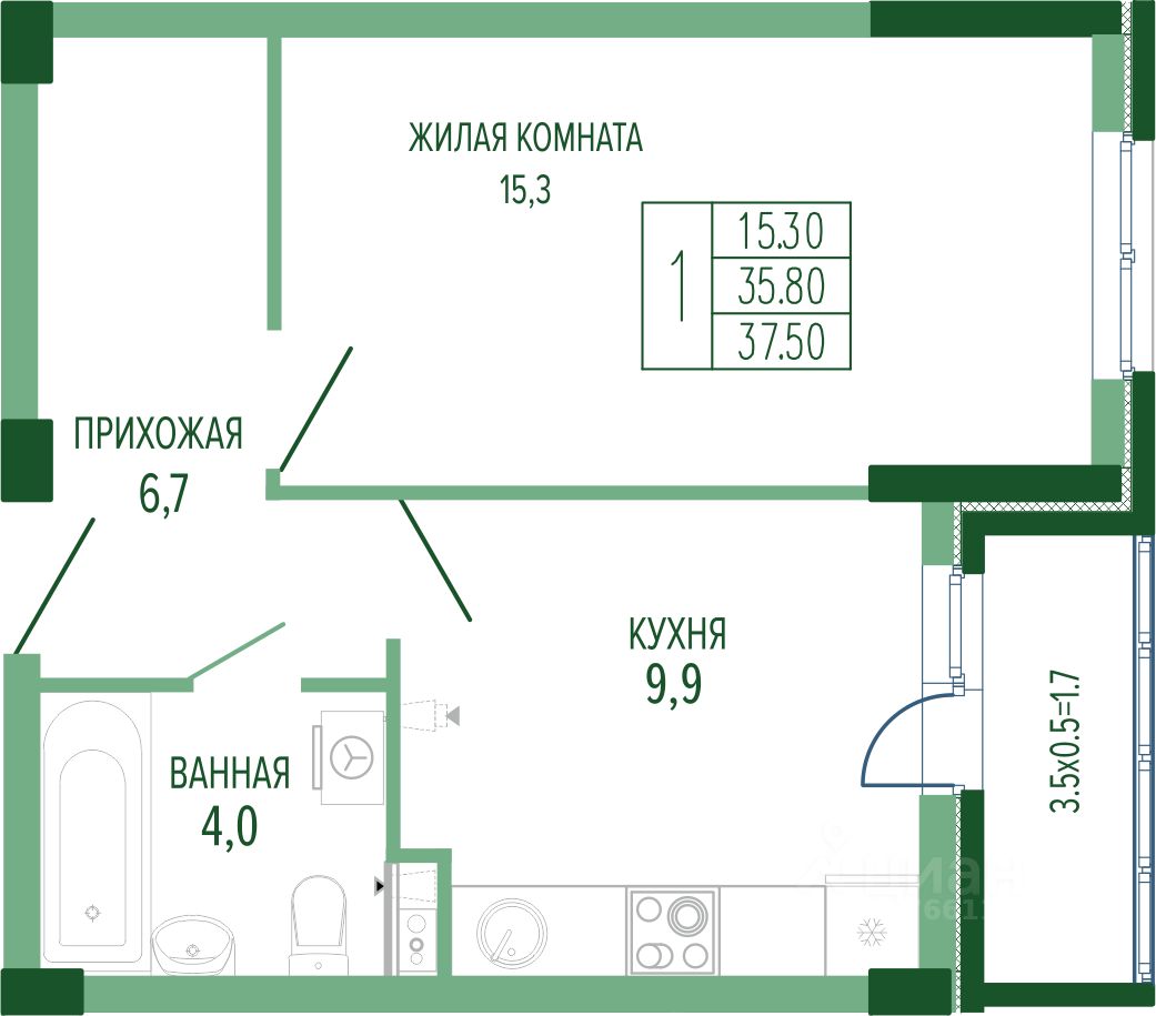 Общая площадь38,4 м²