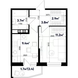 Продаётся 1-комнатная квартира в сданном доме (Литер 2.7), срок сдачи: IV-кв. 2024, общей площадью 32.7 кв.м., на 5 этаже. Расположение, транспортная доступность