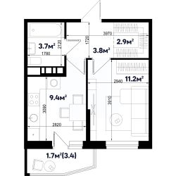 Продаётся 1-комнатная квартира в сданном доме (Литер 2.7), срок сдачи: IV-кв. 2024, общей площадью 32.7 кв.м., на 6 этаже. Расположение, транспортная доступность