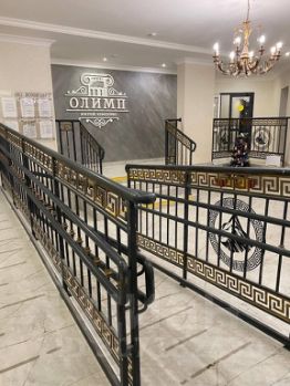 Современный дом. Просторный холл с консьержем и пандусом. Во дворе детская и спортивная площадки, места для отдыха. Закрытая безопасная территория с парковкой (ворота для машины открываются с пульта), круглосуточное видеонаблюдение.