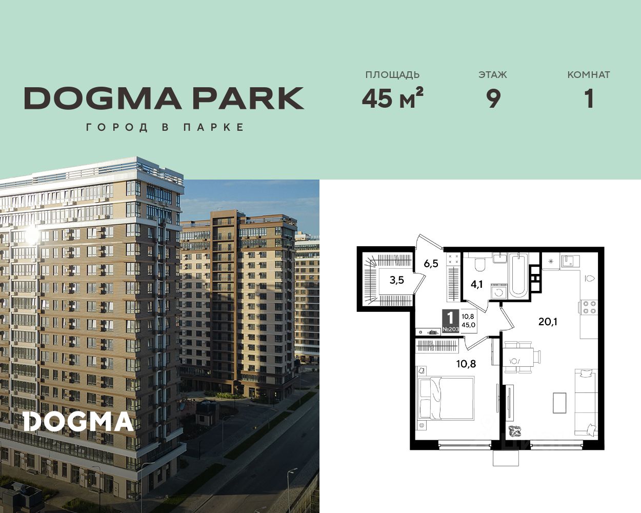 В продаже 1-комнатная квартира от застройщика! Мкр. "DOGMA PARK" г. Краснодар, Литер 14 Срок сдачи: 4 кв. 2027, общей площадью 45 кв.м., на 9 этаже.