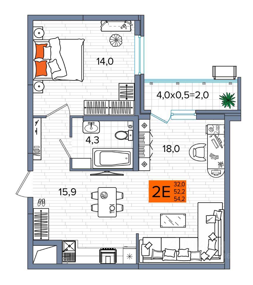 площадью 54.2 кв.м. на 2 этаже в 1-м подъезде - это оптимальный выбор для тех, кто ценит уют, качество и современный комфорт.