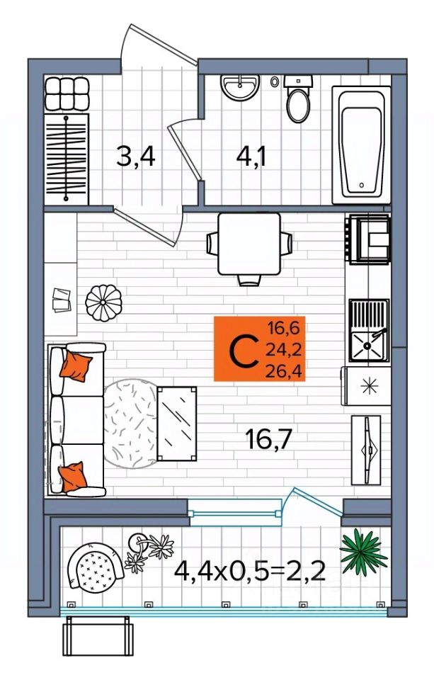площадью 26.4 кв.м. на 2 этаже в 2-м подъезде - это оптимальный выбор для тех, кто ценит уют, качество и современный комфорт.