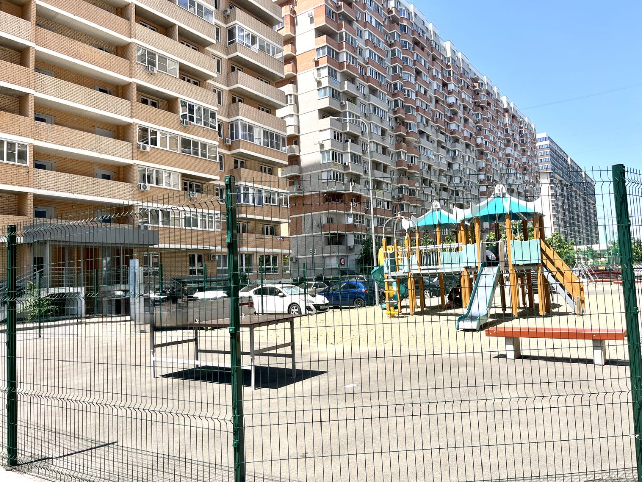 Во дворе комплекса — наземный паркинг, спортивная и игровая площадки.