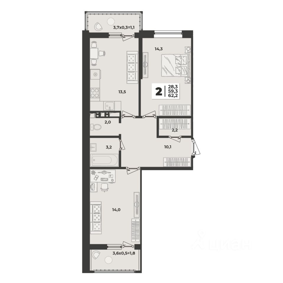 Продаётся 2-комнатная квартира в сданном доме (Литер 1.7), срок сдачи: III-кв. 2025, общей площадью 62.2 кв.м., на 2 этаже. Новый жилой комплекс "Лето" от застройщика "ГК Дарстрой" расположен по адресу город Краснодар, улица Западный Обход.