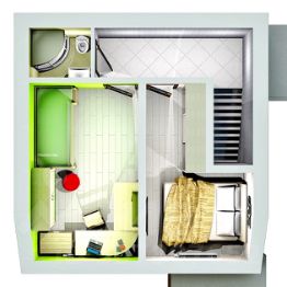 Первый уровень: кухня-гостиная 39 м² с выходом на балкон