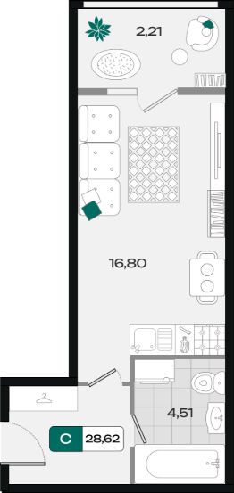 Общая площадь28,62 м²