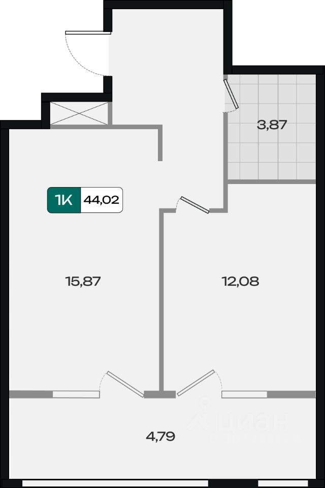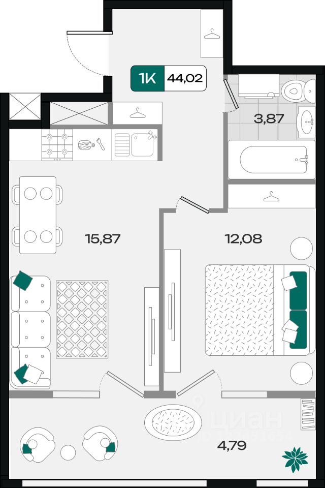 Общая площадь44,02 м²