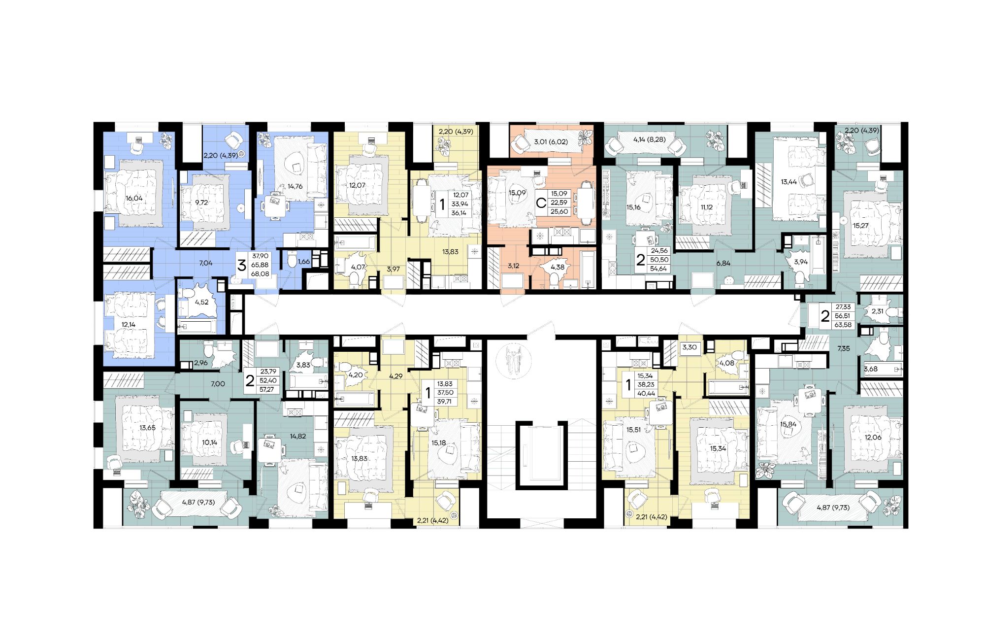 Первые этажи предназначены для коммерческой недвижимости, что обеспечивает удобство и доступность всех необходимых услуг.