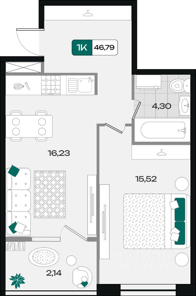 Общая площадь46,79 м²