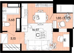 Общая площадь25,63 м²
