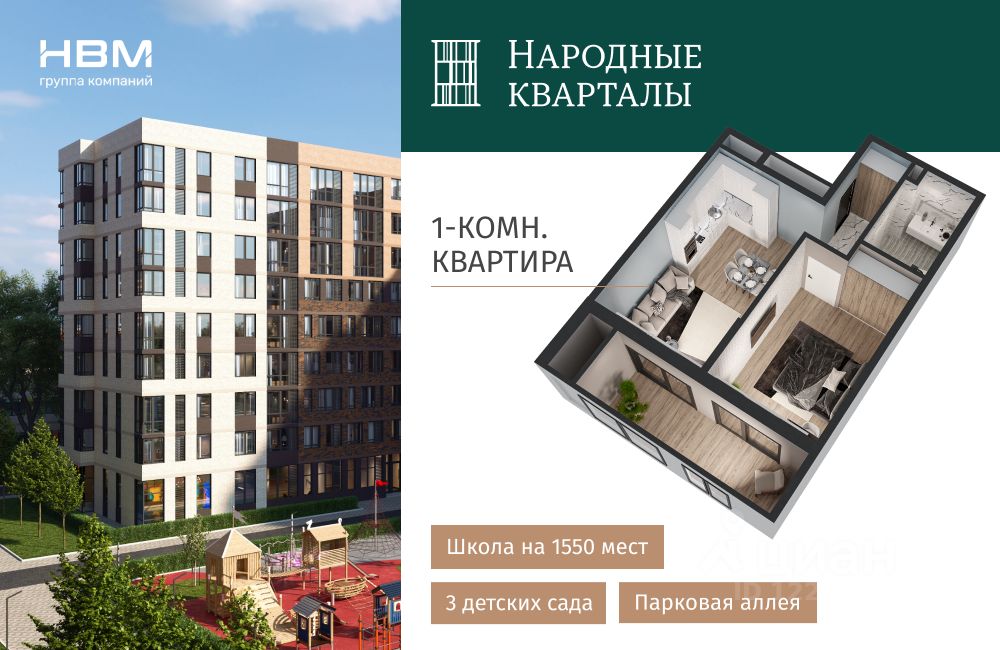 Прямая продажа от застройщика. Живите там, где удобно, где уютно и где всегда рядом все, что нужно для жизни. Выбирайте ЖР "Народные кварталы".