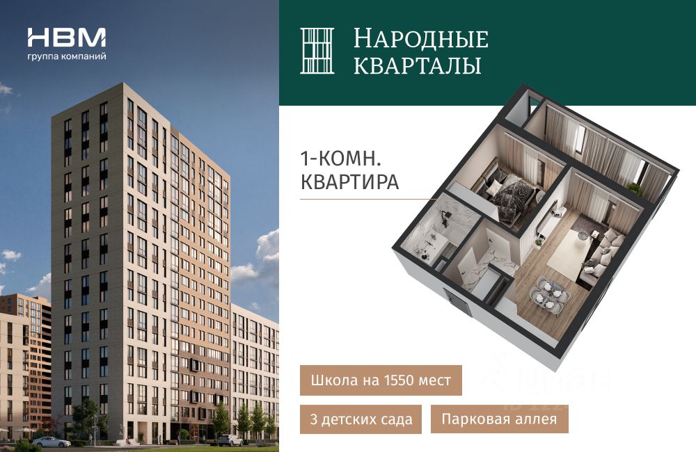 Жилой район "Народные кварталы" Комфортный мир, где каждая деталь создана для удобства и гармонии. Что порадует в домах: Дизайнерские входные группы с просторными колясочными и велосипедными — все для комфорта с первого шага. Монолитно-кирпичная технология строительства гарантирует тепло, надежность и долговечность. Высота потолков до 3,9 м наполняет пространство светом и воздухом, создавая ощущение свободы. Предчистовая отделка избавит от пыльных и шумных работ — вы сможете сразу же начать обустраивать свой новый дом по своему вкусу. Первые этажи предназначены для коммерческой недвижимости, что обеспечивает удобство и доступность всех необходимых услуг. О придомовой территории: Просторные пешеходные зоны, пандусы и гостевые парковочные места создают комфортную среду для прогулок и отдыха всей семьи. Закрытая охраняемая территория с видеонаблюдением обеспечит вам полное спокойствие и безопасность. Многоуровневый паркинг на 5000+ машиномест — забудьте о проблемах с парковкой! Детские и спортивные площадки, зеленый бульвар — идеальное место для активного отдыха и общения с соседями. Три детских сада по 350 мест и школа на 1550 мест — все для удобства ваших детей. Более 18 000 м² пространства для занятий спортом: футбол, баскетбол или теннис — выберите то, что вам по душе! Все необходимое — на расстоянии вытянутой руки: ТРЦ "Красная Площадь", "Метро", "Стрелочка" — шопинг и развлечения для всей семьи. Супермаркеты, аптеки, рестораны и остановки общественного транспорта — все для вашего комфорта. Прямая продажа от застройщика. Живите там, где удобно, где уютно и где всегда рядом все, что нужно для жизни. Выбирайте ЖР "Народные кварталы".