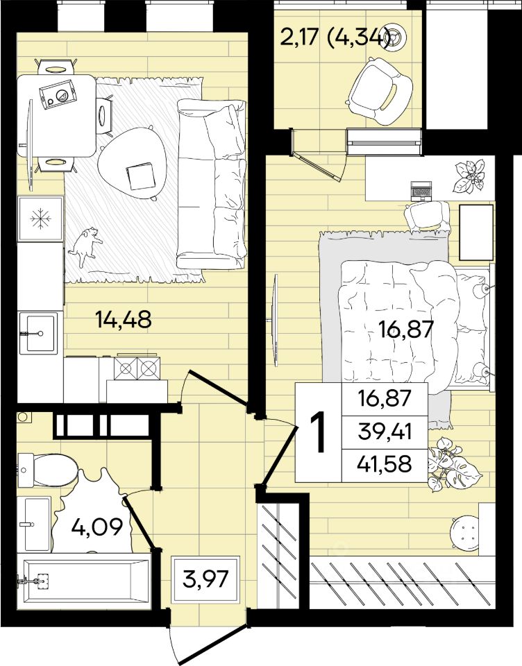 Высота потолков до 3,9 м наполняет пространство светом и воздухом, создавая ощущение свободы.