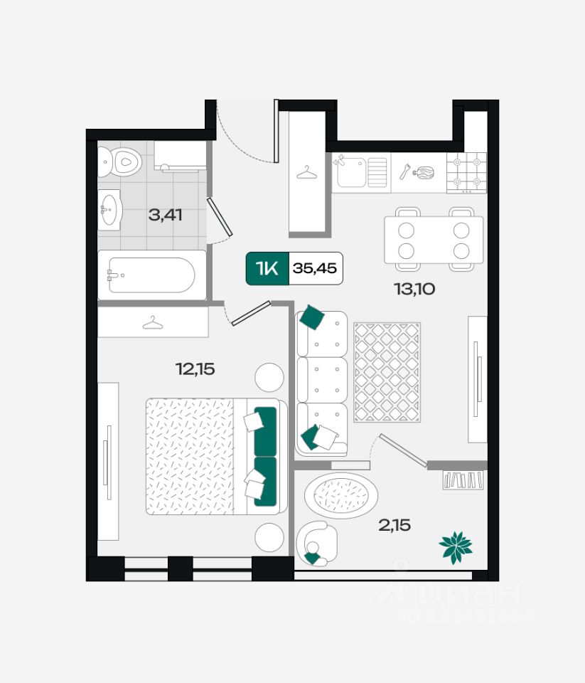Общая площадь35,45 м²