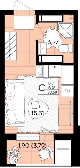 Общая площадь20,68 м²