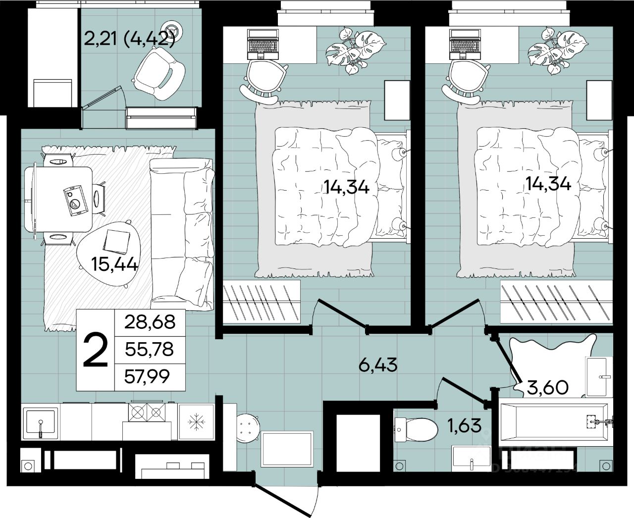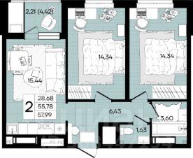 Общая площадь57,99 м²