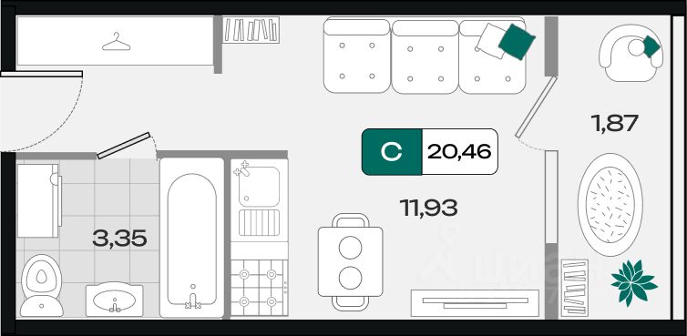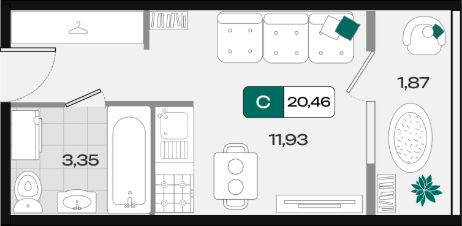 Общая площадь20,46 м²