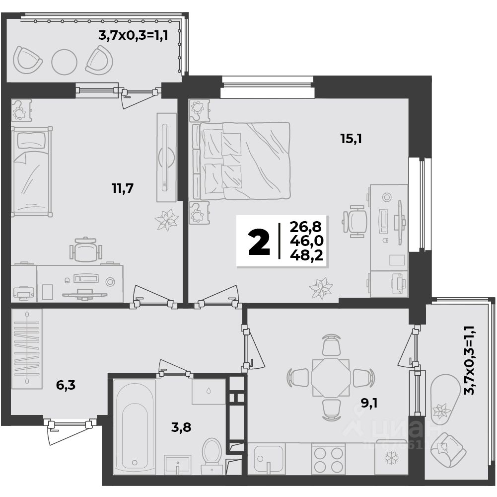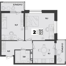 Продаётся 2-комнатная квартира в строящемся доме (Литер 2.1), срок сдачи: IV-кв. 2026, общей площадью 48.2 кв.м., на 3 этаже. Новый жилой комплекс "Лето" от застройщика "ГК Дарстрой" расположен по адресу город Краснодар, улица Западный Обход.
