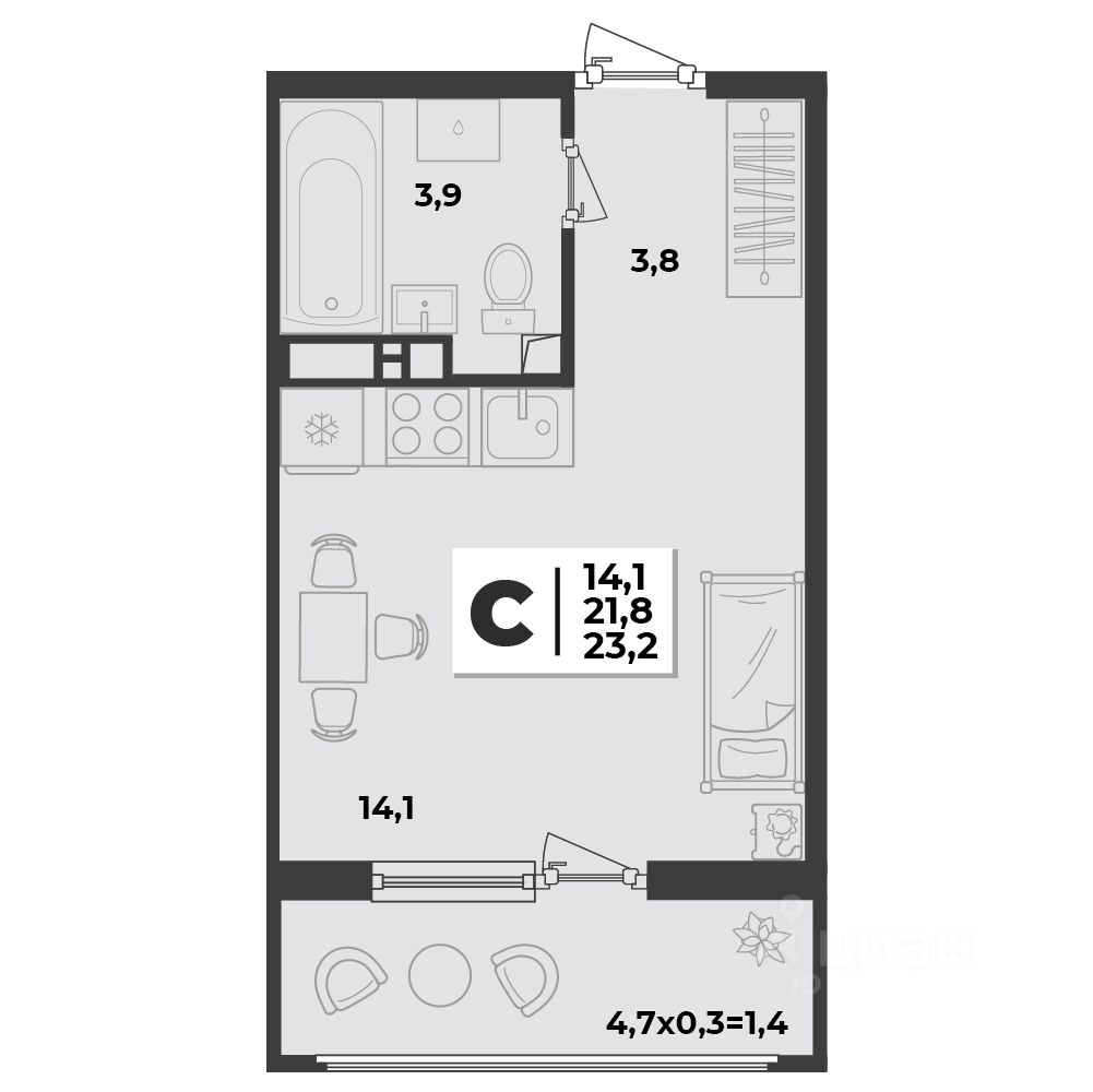 23,2 м²