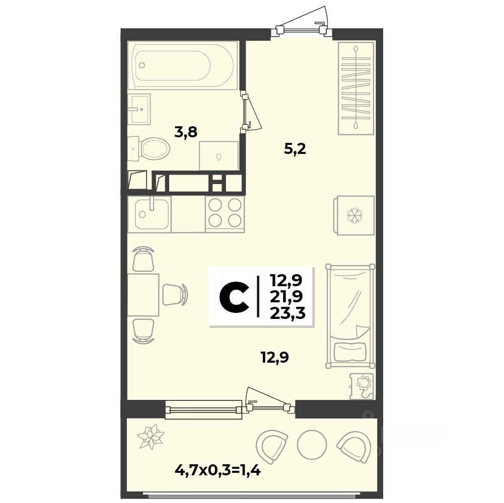 23,3 м²