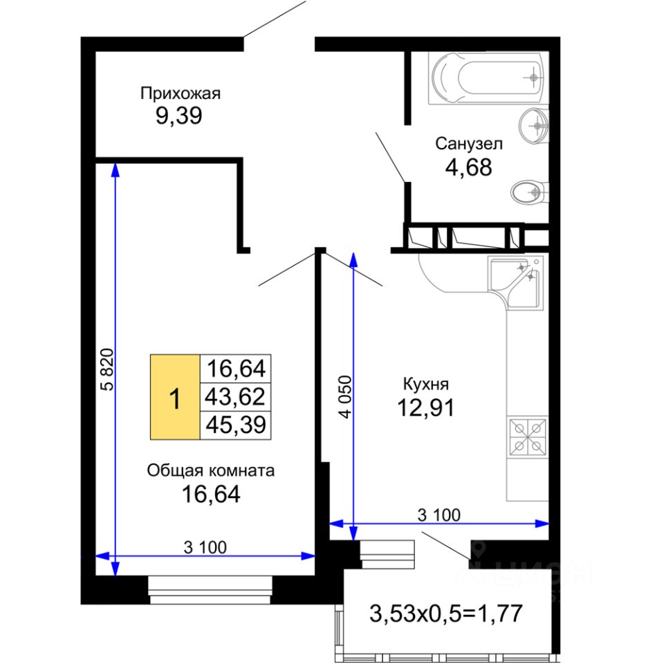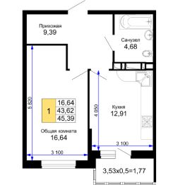 Продаётся 1-комнатная квартира в строящемся доме (Литер 10), срок сдачи: IV-кв. 2025, общей площадью 45.39 кв.м., на 15 этаже. Ипотека от 5,9% на квартиры от ССК на весь срок кредитования