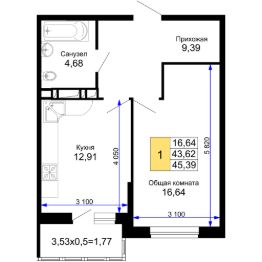 Продаётся 1-комнатная квартира в строящемся доме (Литер 10), срок сдачи: IV-кв. 2025, общей площадью 45.39 кв.м., на 15 этаже. Ипотека от 5,9% на квартиры от ССК на весь срок кредитования