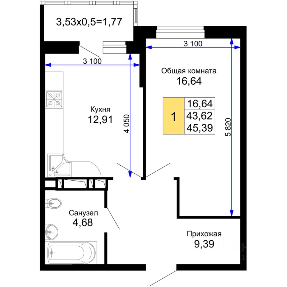 Продаётся 1-комнатная квартира в строящемся доме (Литер 10), срок сдачи: IV-кв. 2025, общей площадью 45.39 кв.м., на 15 этаже. Ипотека от 5,9% на квартиры от ССК на весь срок кредитования