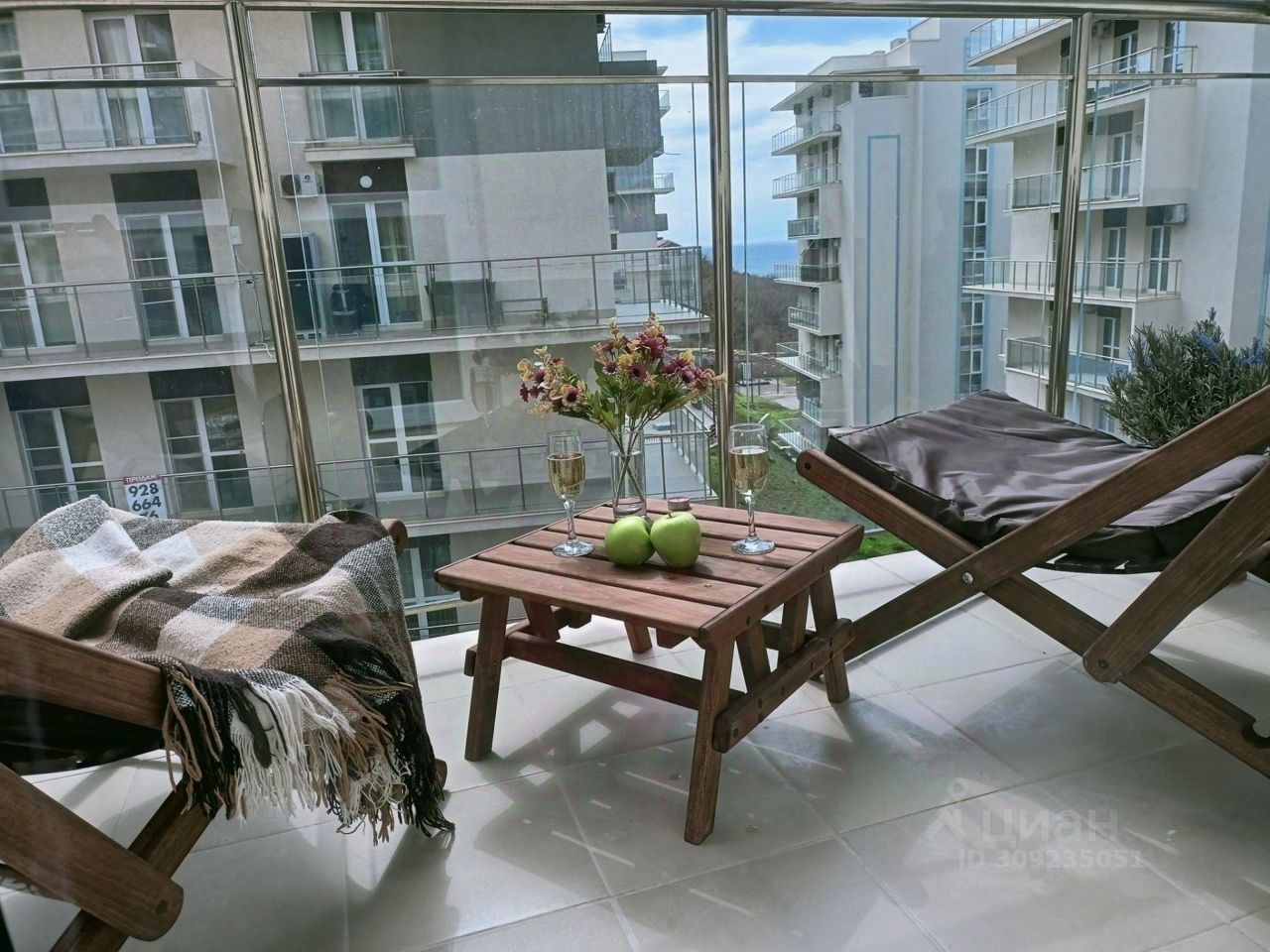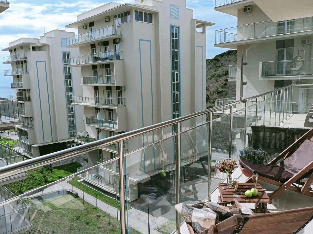 Просторная и видовая лоджия 6м2, которая оснащена релакс зоной с мебелью, освещением, где вы сможете наслаждаться роскошными видами на Черное море и горы!