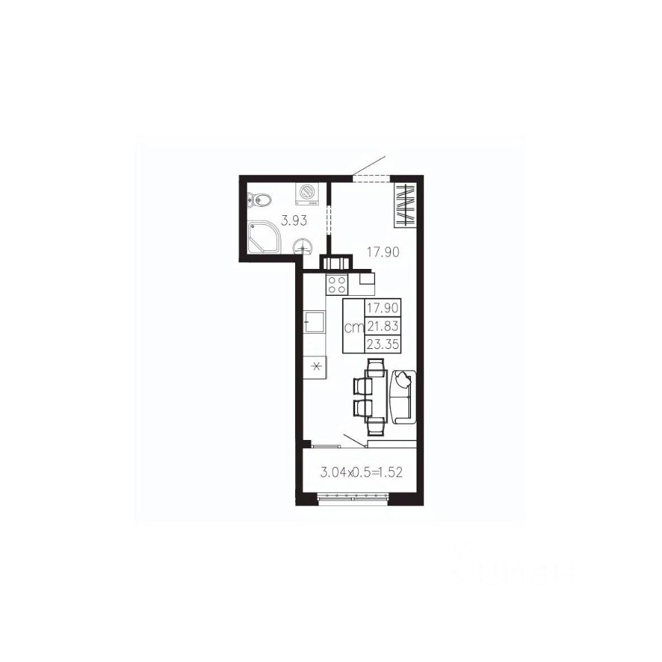 Общая площадь23,35 м²