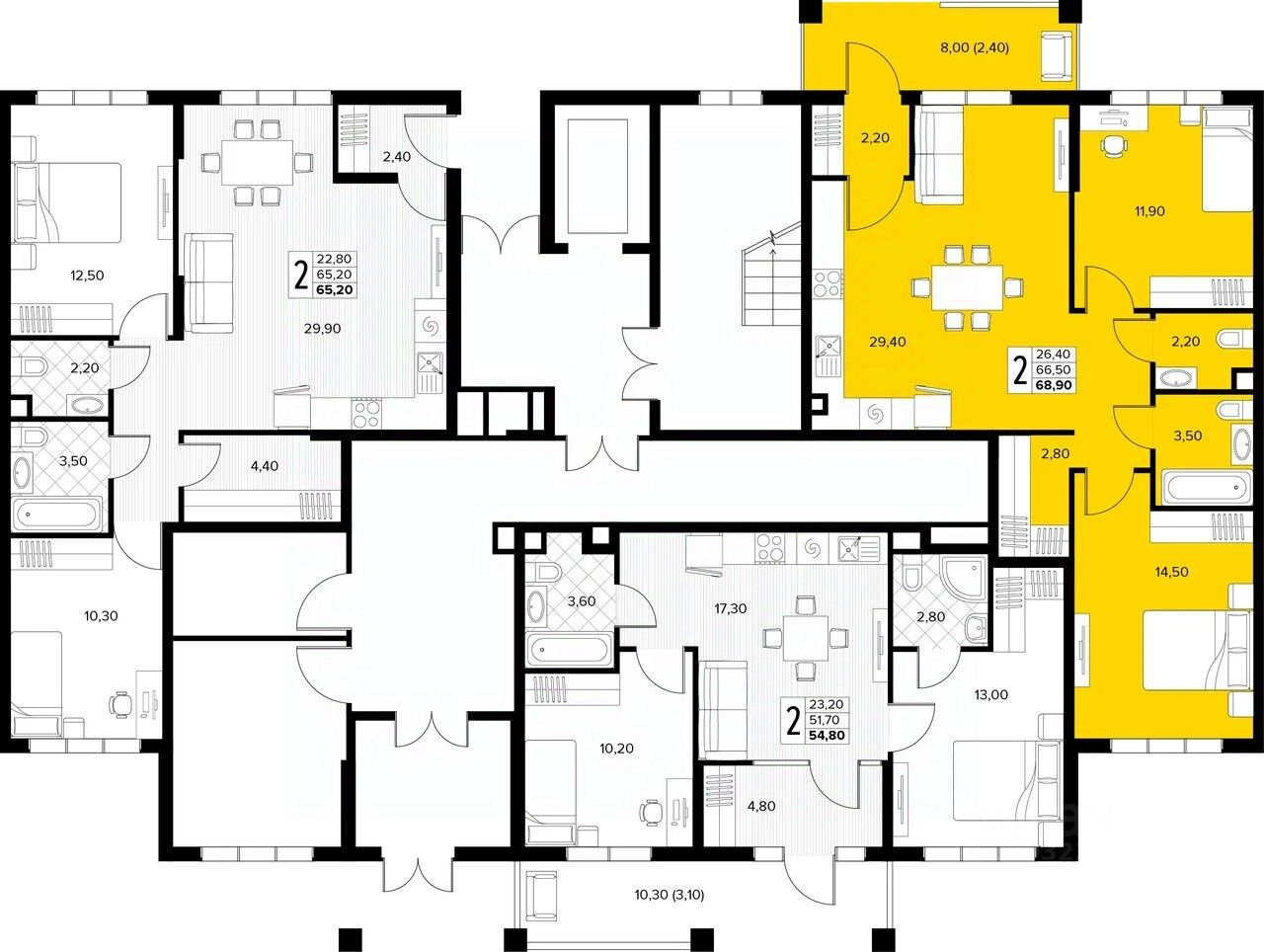 Продаётся 2-комн. квартира от застройщика c отделкой в ЖК "Кипарис" на 1 этаже. Общая площадь:68.9 кв.м., площадь просторной кухни-столовой:29.4. B квартире один балкон. Высота потолков 2.81 м.