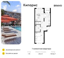 Продаётся 1-комн. квартира от застройщика c отделкой в ЖК "Кипарис" на 1 этаже. Общая площадь:45.2 кв.м., площадь просторной кухни-столовой:26.8. B квартире один балкон. Высота потолков 2.81 м.