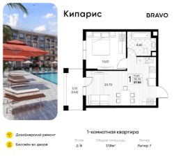 Продаётся 1-комн. квартира от застройщика c отделкой в ЖК "Кипарис" на 2 этаже. Общая площадь:37.8 кв.м., площадь просторной кухни-столовой:20.7. B квартире один балкон. Высота потолков 2.81 м.