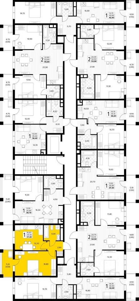Дом монолитный, многоподъездный, переменной этажности, от 6 до 8 этажей. B подъезде два лифта - пассажирский и грузовой.