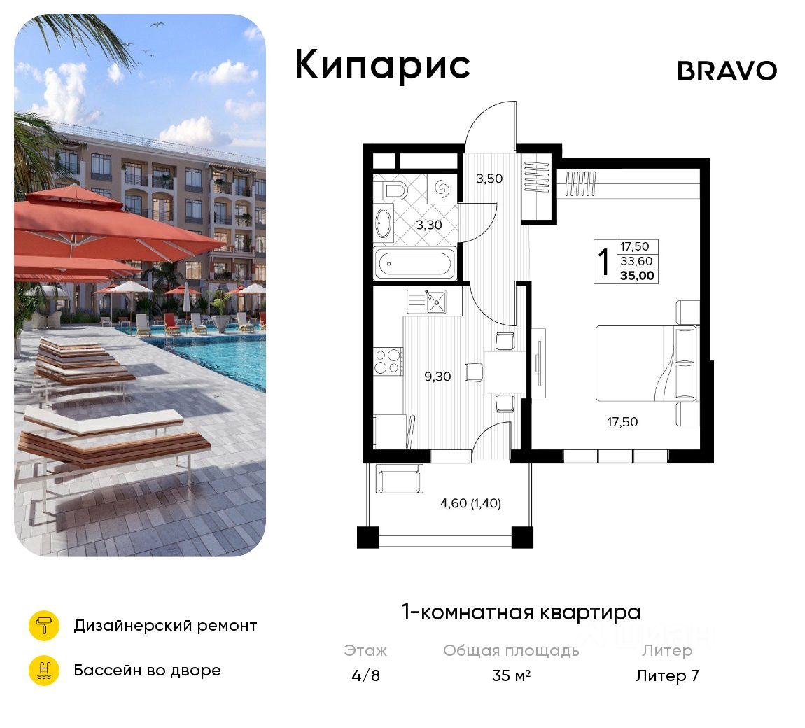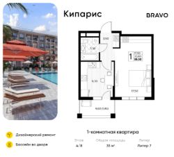 Продаётся 1-комн. квартира от застройщика c отделкой в ЖК "Кипарис" на 4 этаже. Общая площадь:35 кв.м., площадь просторной кухни-столовой:9.3. B квартире один балкон. Высота потолков 2.81 м.