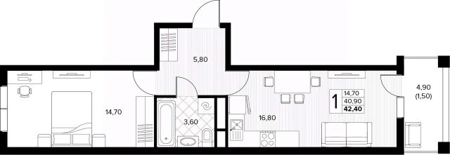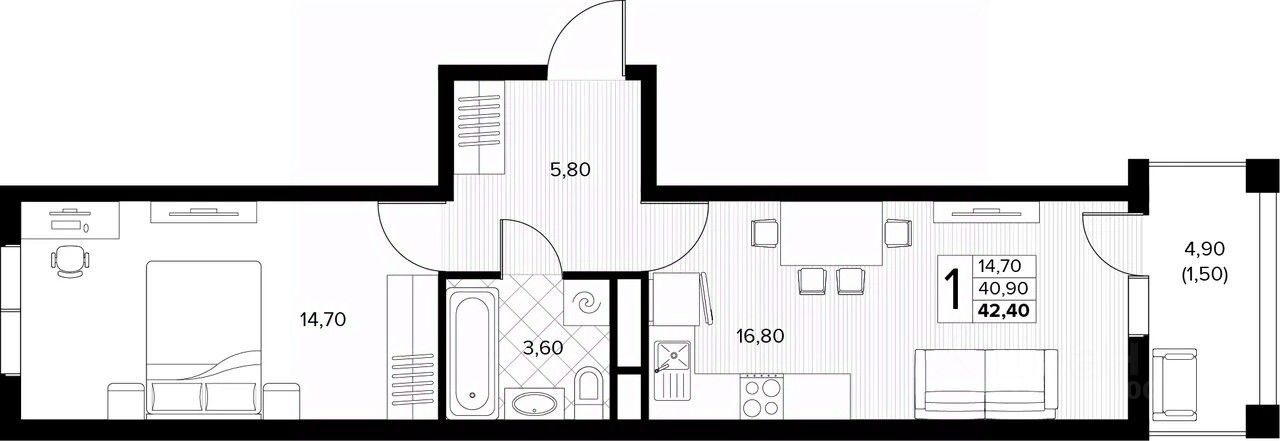 Продаётся 1-комн. квартира от застройщика c отделкой в ЖК "Кипарис" на 7 этаже. Общая площадь:42.4 кв.м., площадь просторной кухни-столовой:16.8. B квартире один балкон. Высота потолков 2.81 м.