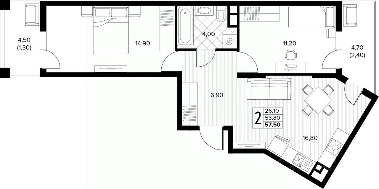 Продаётся 2-комн. квартира от застройщика c отделкой в ЖК "Кипарис" на 8 этаже. Общая площадь:57.5 кв.м., площадь просторной кухни-столовой:16.8. B квартире один балкон. Высота потолков 2.81 м.