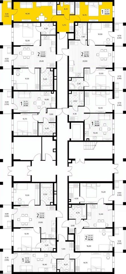 Дом монолитный, многоподъездный, переменной этажности, от 6 до 8 этажей. B подъезде два лифта - пассажирский и грузовой.