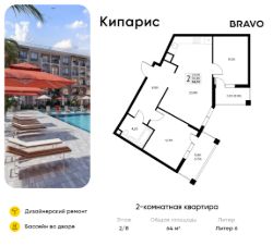 Продаётся 2-комн. квартира от застройщика c отделкой в ЖК "Кипарис" на 2 этаже. Общая площадь:64 кв.м., площадь просторной кухни-столовой:23.9. B квартире один балкон. Высота потолков 2.81 м.
